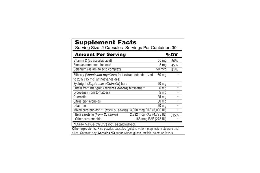 Provides antioxidant vitamins, minerals and botanical extracts to combat free radical damage caused by excessive daily blue light exposure.
