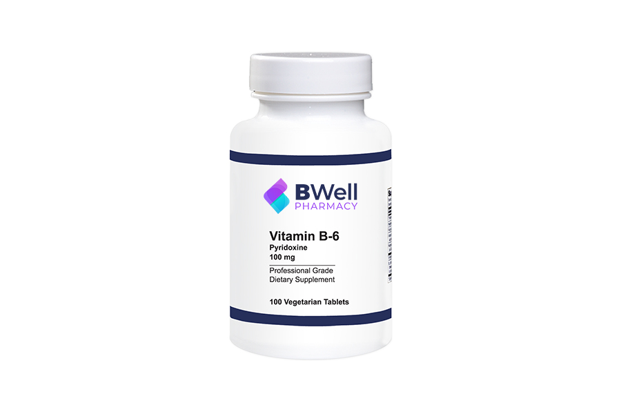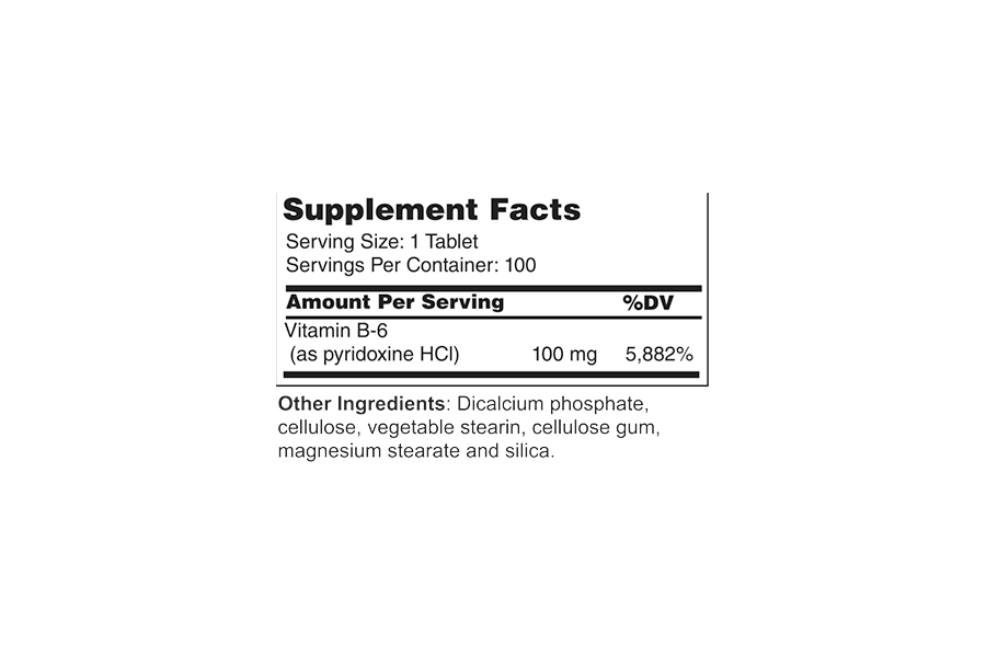 Vitamin B-6 is important in amino acid metabolism, hemoglobin formation, nerve impulse transmissions, and hormone synthesis. Vitamin B-6 supplies 100 mg of pyridoxine HCl in each tablet.